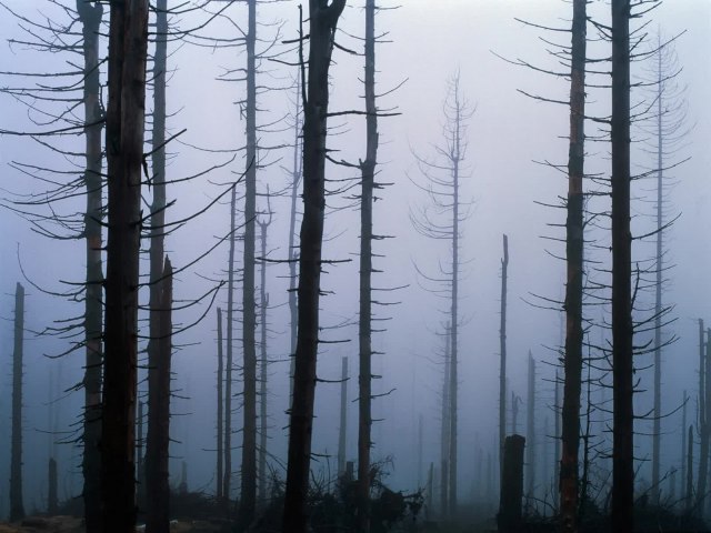 A chuva ácida e a neblina também danificam as florestas, especialmente aquelas em altitudes mais elevadas. A deposição seca de ácido rouba do solo nutrientes essenciais, como cálcio, e faz com que o alumínio seja liberado no solo, o que dificulta a absorção de água pelas árvores. Os ácidos também prejudicam as folhas e agulhas das árvores.